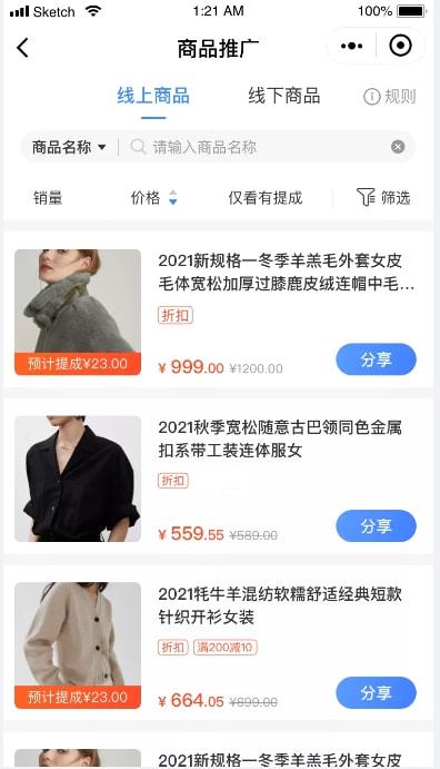 導(dǎo)購可以在導(dǎo)購端分享店內(nèi)的商品到自己的朋友圈或是微信群等地方,對商品進行推廣