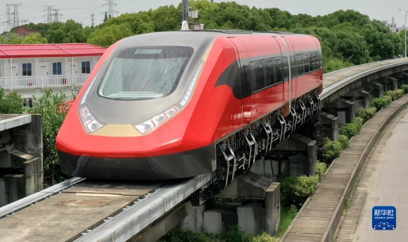 這是在上海同濟大學高速試驗線上進行動態(tài)調(diào)試的磁浮3.0列車(2021年6月20日攝)。新華社發(fā)(梁超攝)