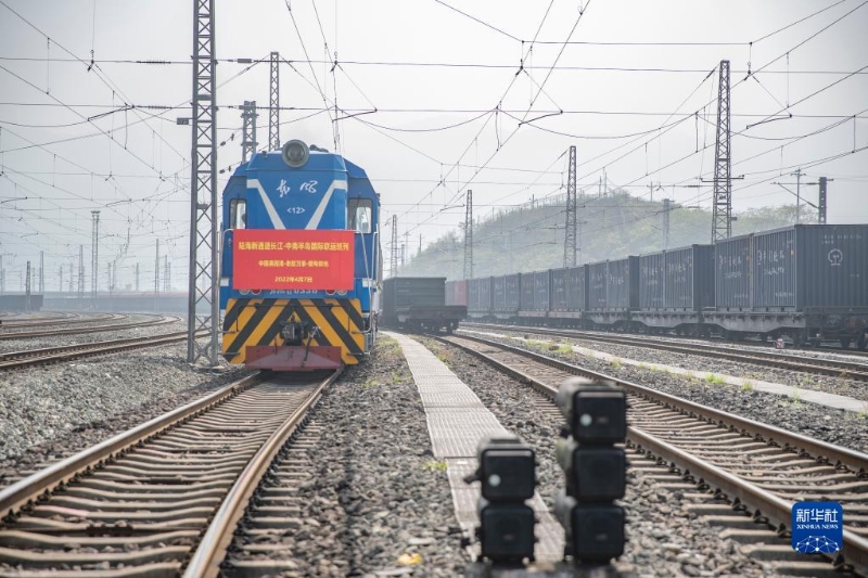 4月7日,長(zhǎng)江—中南半島國(guó)際聯(lián)運(yùn)班列從重慶果園港發(fā)出。