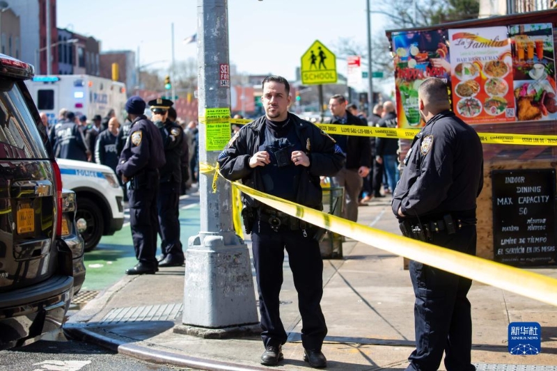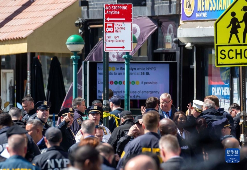 4月12日,警察在美國紐約發(fā)生槍擊的地鐵站附近警戒。