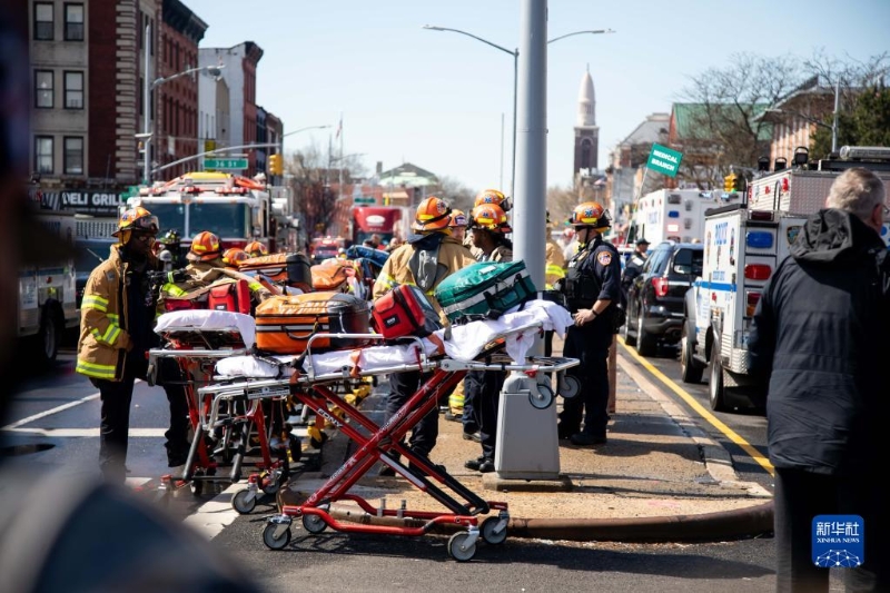 4月12日,救護(hù)人員在美國紐約發(fā)生槍擊的地鐵站附近工作。