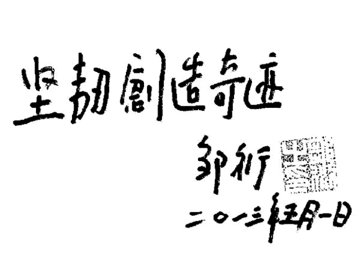 鄒衍題字:堅(jiān)韌創(chuàng)造奇跡。