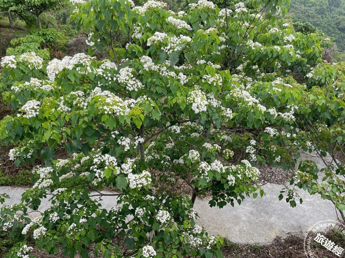 梅嶺福來梅子雞餐廳前-油桐花盛開中