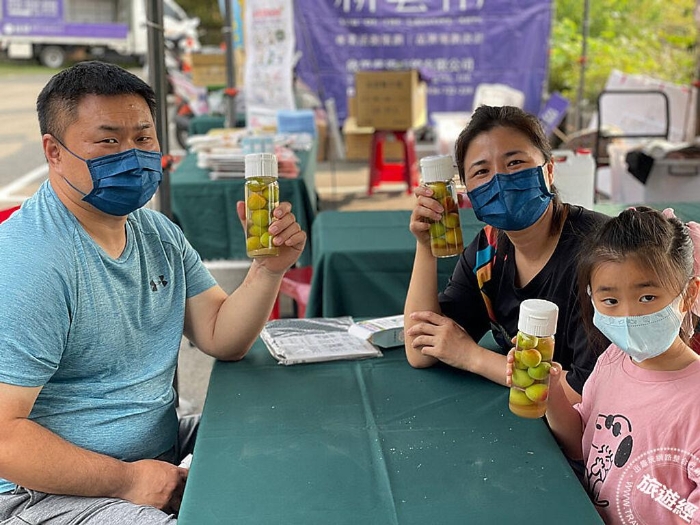 梅嶺-梅子雞等特色料理活動地點(diǎn)伍龍步道前廣場并安排有梅子酒及星空沙畫瓶DIY讓民眾于賞螢前體驗,而楠西區(qū)在地協(xié)會、農(nóng)民也擺設(shè)梅子等在地農(nóng)特產(chǎn),吸引現(xiàn)場民眾采買。下午4點(diǎn)開始民眾陸續(xù)排隊報到并入山賞螢,民眾也可以借機(jī)品嘗梅子特色料理,現(xiàn)場也透過廣播倡導(dǎo)請民眾配合戴口罩、量體溫及噴酒精等防疫措施。