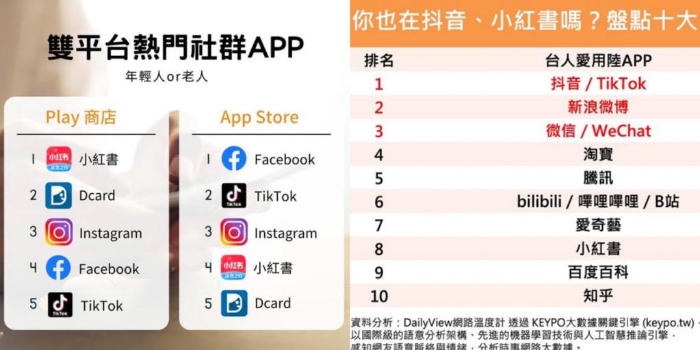 大陸應(yīng)用軟件在臺灣多個平臺下載量高企。圖片來源于網(wǎng)絡(luò)
