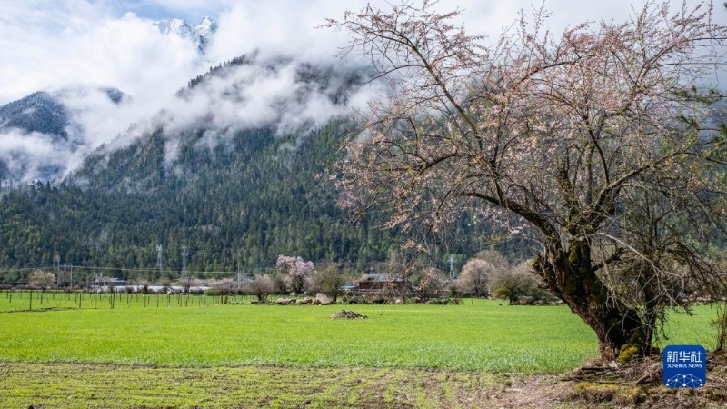 4月的西藏波密春意盎然,近處桃花遠處雪,美如畫卷。