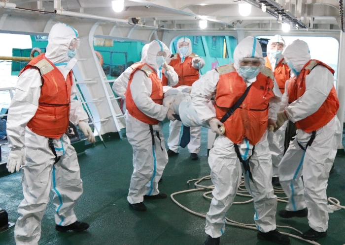 隨后秀山艦將受傷漁民轉(zhuǎn)運(yùn)至艙內(nèi)隔離病房,并安排隨艦醫(yī)生和求助漁船上的兩名漁民對(duì)傷員全程陪護(hù)次日凌晨,秀山艦靠泊浙江舟山某碼頭,將受傷漁民轉(zhuǎn)運(yùn)至醫(yī)院救治。(翟煥才、陶子一、王鵬欽)