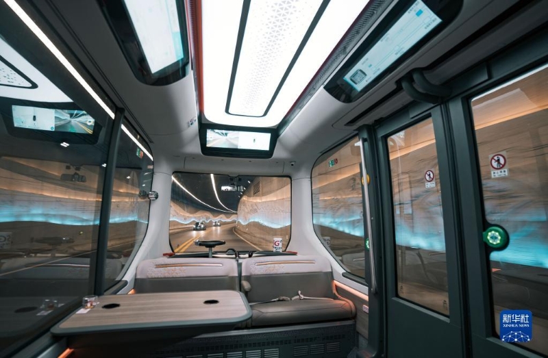 新能源自動(dòng)駕駛小巴行駛在連接博鰲亞洲論壇成立會(huì)址與論壇國際會(huì)議中心的博鰲通道中(4月16日攝)。