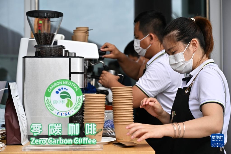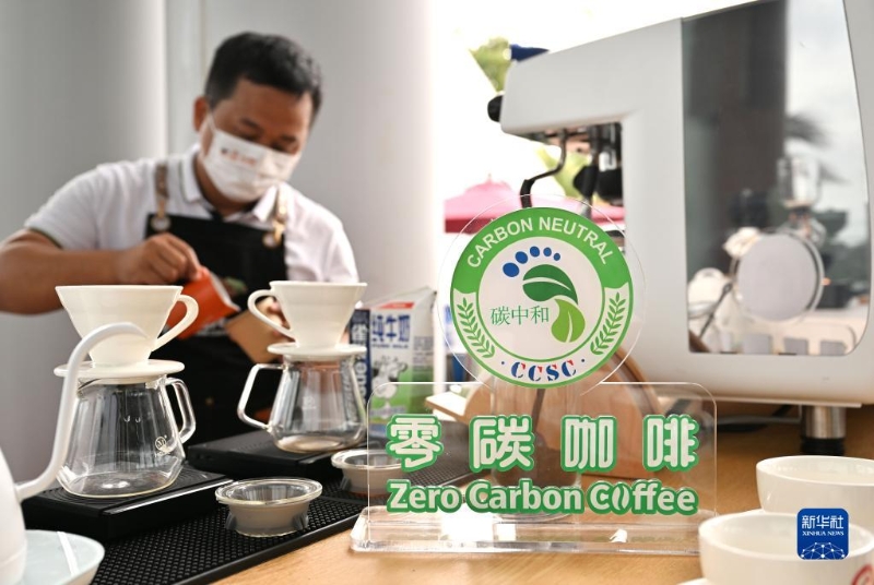 4月20日,工作人員在博鰲亞洲論壇新聞中心制作一款“零碳咖啡”,這款咖啡在生產(chǎn)、加工、包裝等環(huán)節(jié)均實(shí)現(xiàn)綠色低碳。
