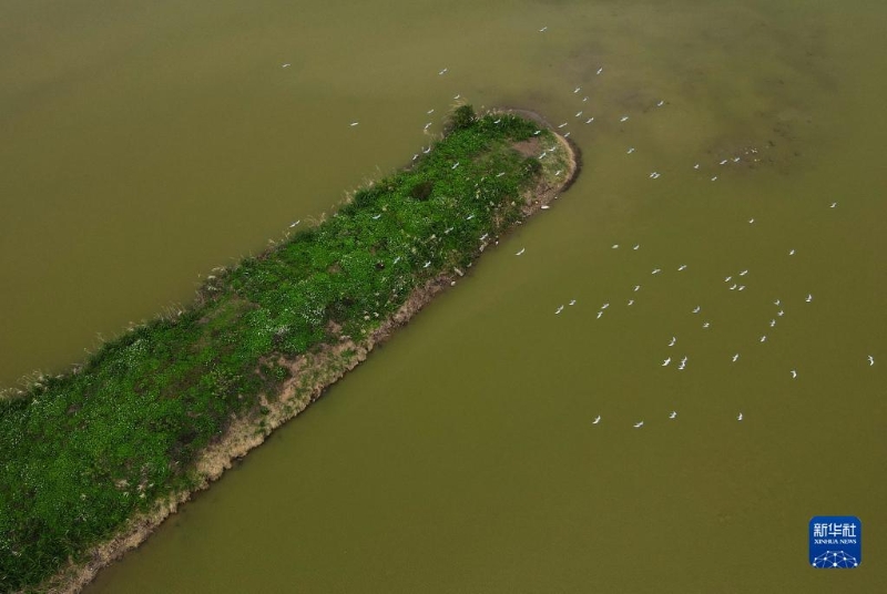 一群水鳥在閩江河口濕地里穿梭飛行(4月21日攝,無人機(jī)照片)。