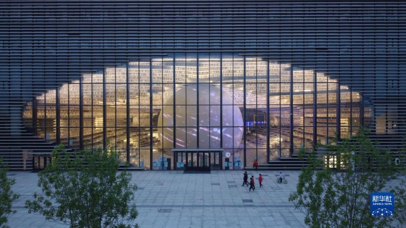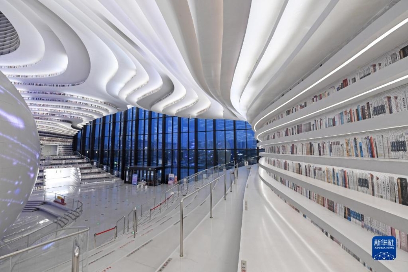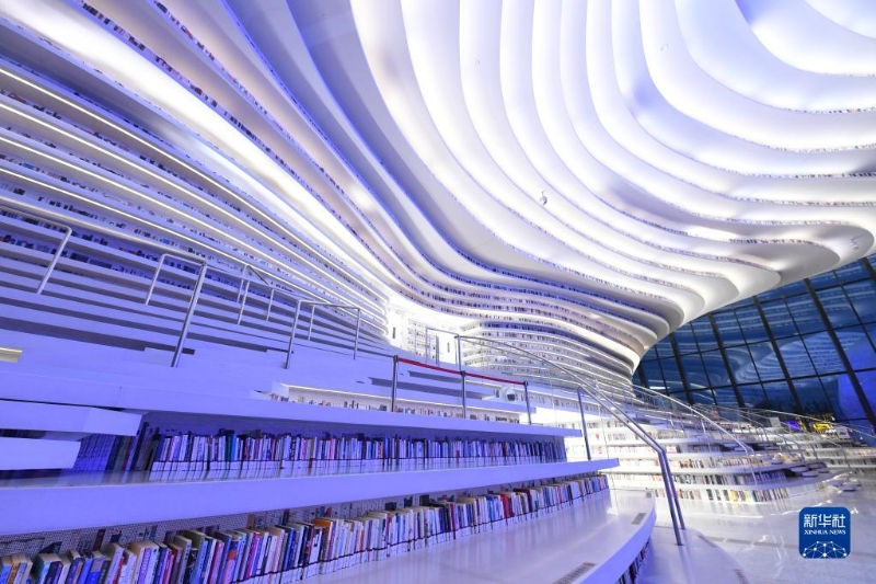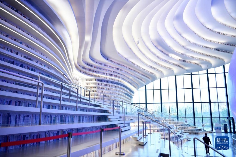 這是4月20日拍攝的天津濱海新區(qū)圖書館內(nèi)景。