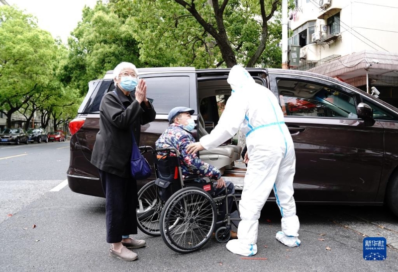 上海閔行區(qū)古美社區(qū)衛(wèi)生服務中心司機馮守光把血透患者和家屬送回家(4月18日攝)。新華社記者 張建松 攝
