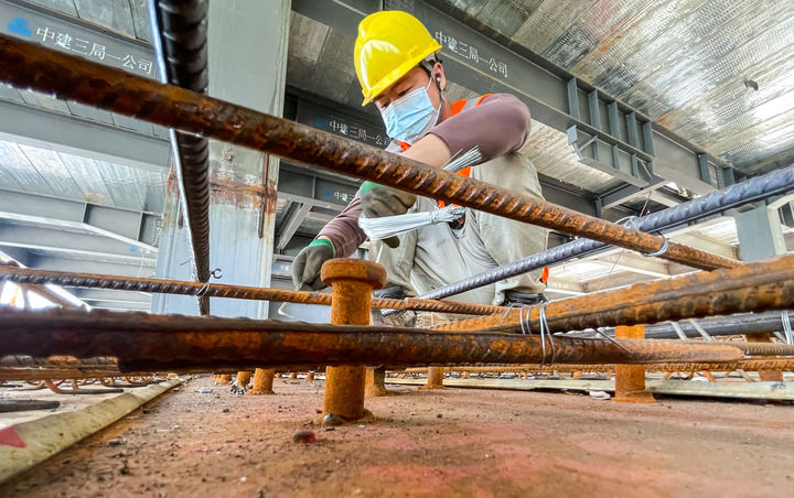 4月24日,中建三局一公司的工程人員在項(xiàng)目現(xiàn)場施工建設(shè)。