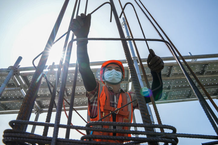 4月24日,中建三局一公司的工程人員在項(xiàng)目現(xiàn)場施工建設(shè)。新華社記者 李博 攝