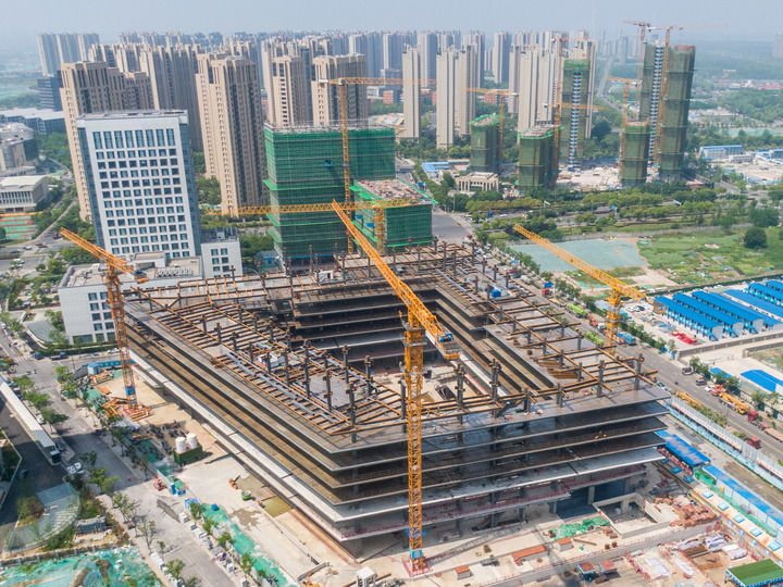 這是4月24日拍攝的南京市建鄴區(qū)小米集團(tuán)華東總部項(xiàng)目施工現(xiàn)場(無人機(jī)照片)。新華社記者 李博 攝