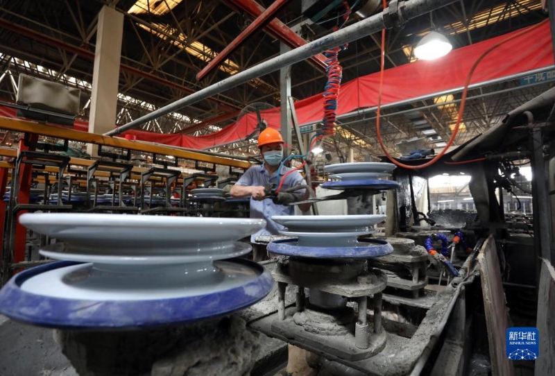 4月25日,工人在江蘇蘇州電瓷廠股份有限公司生產(chǎn)車間忙碌。