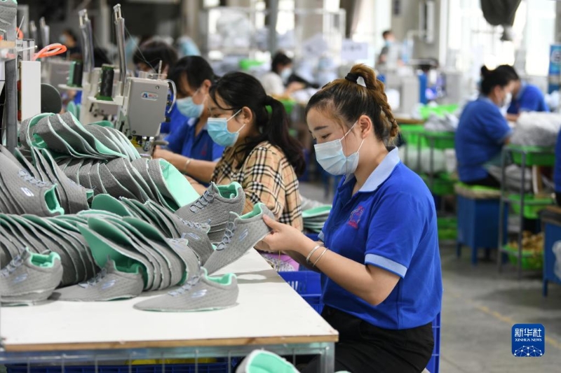 4月25日,在福建福州倉山區(qū)一家鞋企生產(chǎn)線上,工人在生產(chǎn)出口運動鞋。當?shù)赝ㄟ^落實各項惠企政策,進一步加大助企紓困力度。