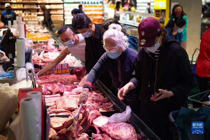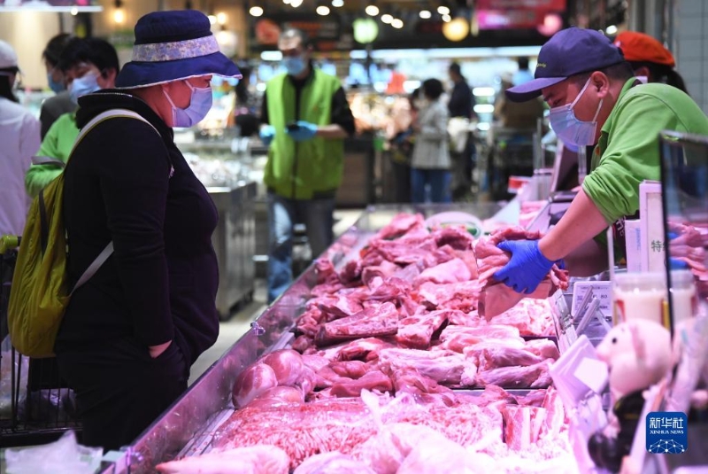 4月26日,市民在位于北京市海淀區(qū)的超市發(fā)雙榆樹店選購鮮肉。