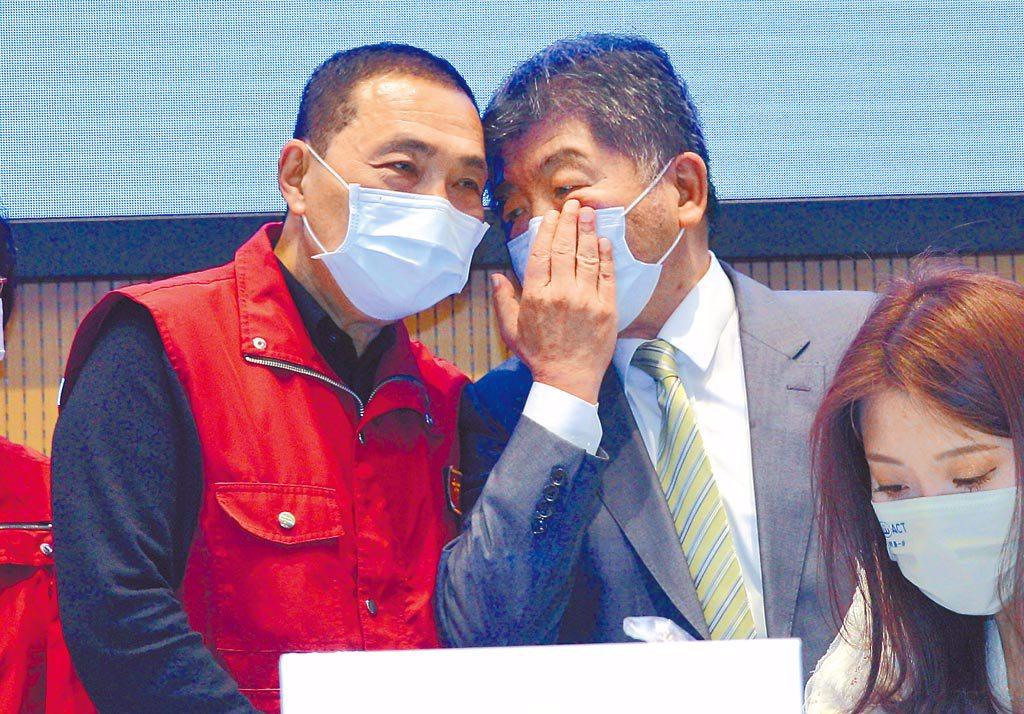 臺(tái)衛(wèi)福部門(mén)主管、“指揮中心”指揮官陳時(shí)中(右)與新北市市長(zhǎng)侯友宜(左)。(圖/張鎧乙攝)