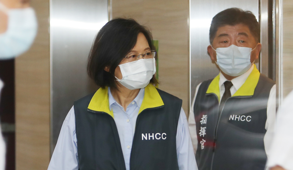島內(nèi)疫情嚴(yán)重,蔡英文(左)26日特別邀集各部門首長(zhǎng)到“疫情指揮中心”開會(huì),商討因應(yīng)的對(duì)策,會(huì)后發(fā)表談話宣布會(huì)加強(qiáng)調(diào)整防疫四大政策,包含“輕重癥分流”、“快篩試劑”、“重點(diǎn)疫調(diào)”與“疫苗施打”等措施,右為疫情指揮官陳時(shí)中。(資料照/季志翔攝)