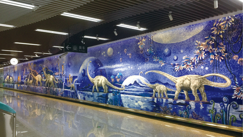 成都地鐵 7 號線理工大學(xué)站壁畫《夢回遠(yuǎn)古》