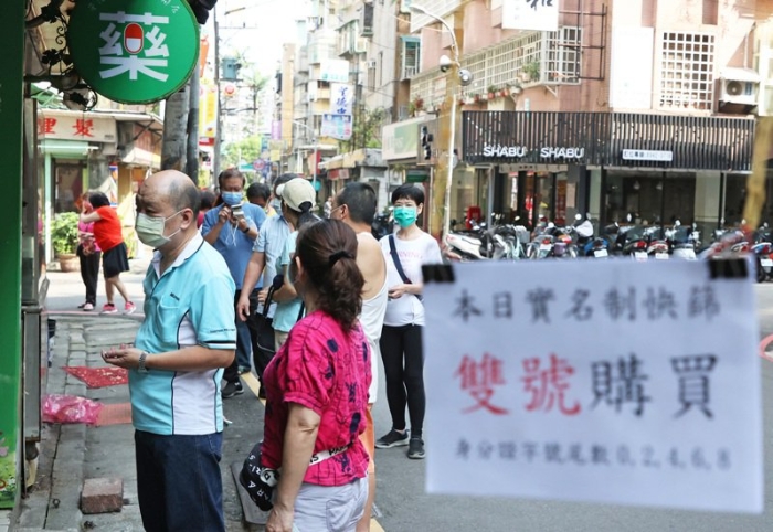 快篩實名制今上路,許多民眾一早就在藥局門口排隊,藥局人員貼心在門口掛告示牌提醒民眾今天是身分證尾數雙號才能購買。記者潘俊宏/攝影