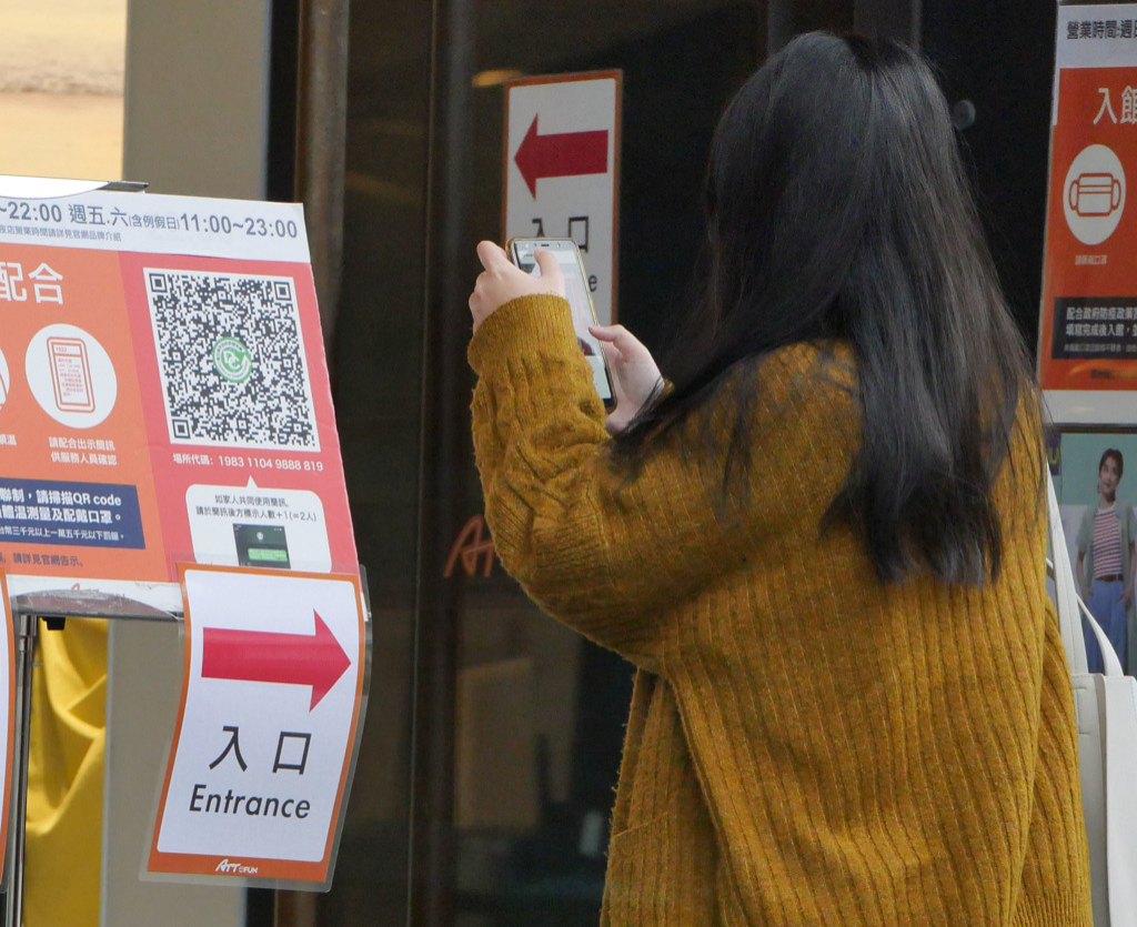 鄉(xiāng)民直言,實(shí)聯(lián)制最大的問題是資料無法進(jìn)行疫調(diào),圖為民眾掃描QR code完成實(shí)聯(lián)制。(本報(bào)資料照)
