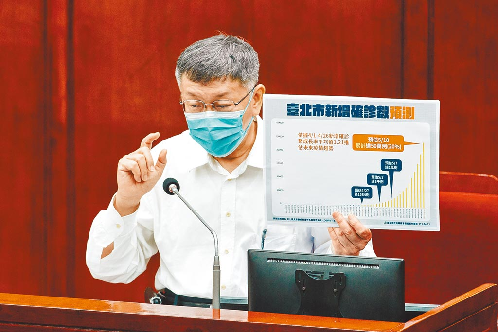 臺(tái)北市長(zhǎng)柯文哲(見圖)27日赴市議會(huì)報(bào)告追加減預(yù)算,面對(duì)議員不斷質(zhì)詢什么是軟性封城,柯解釋,軟性封城的標(biāo)準(zhǔn)就是醫(yī)療量能不能承受時(shí),差不多是單日確診人數(shù),已經(jīng)超過醫(yī)療量能的時(shí)候啟動(dòng),北北基桃要差不多一致,搞特殊也沒有用。(郭吉銓攝)