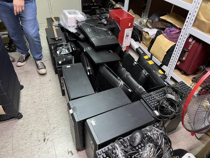 臺(tái)警方查扣到現(xiàn)金46萬(wàn)5000元新臺(tái)幣、手機(jī)47只、熒幕29臺(tái)、主機(jī)18臺(tái)、分享器等贓證物。(翻攝照片/林郁平臺(tái)北傳真)
