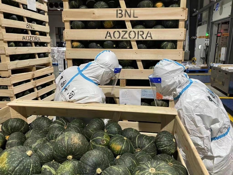 3月29日,一批進口南瓜在上??诎督邮軝z疫查驗。(新華社發(fā) 上海海關(guān)供圖)
