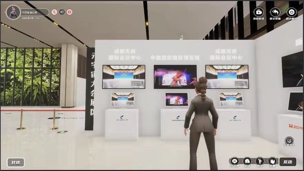 通過(guò)運(yùn)用數(shù)字孿生技術(shù),大會(huì)以天府國(guó)際會(huì)議中心的"成都廳"為原型,在元宇宙展會(huì)再現(xiàn)一個(gè)"成都廳",為參展商和觀(guān)眾提供身臨其境的線(xiàn)上會(huì)展場(chǎng)景。參展商和觀(guān)眾通過(guò)登錄軟件,輸入ID即可進(jìn)入元宇宙展會(huì)現(xiàn)場(chǎng)。參會(huì)者可根據(jù)喜好選擇數(shù)字人形象,體驗(yàn)參會(huì)、看展、交流互動(dòng)等環(huán)節(jié)。
