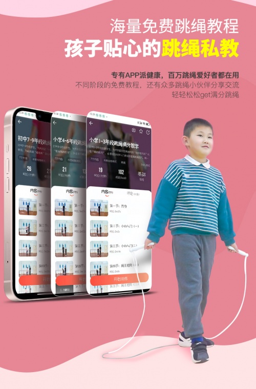 在《國家學(xué)生體質(zhì)健為此康標(biāo)準(zhǔn)》中,跳繩被列為小學(xué)一到六年級評價(jià)指標(biāo)測試項(xiàng)目,也是標(biāo)準(zhǔn)中唯一的加分項(xiàng),為此很多家長都希望孩子堅(jiān)持跳繩運(yùn)動。那么如何才能讓孩子喜歡跳繩,并感受到其中的樂趣與成就感呢?錸鍶科技在上線了全國小學(xué)生跳繩模擬考試功能同時(shí)還為孩子們專門設(shè)計(jì)了兒童款智能跳繩,當(dāng)連接上派健康A(chǔ)PP,眾多有趣的產(chǎn)品智能互動將被激活,讓孩子們在歡聲笑語中運(yùn)動起來,真正的做到考試、鍛煉兩不誤。