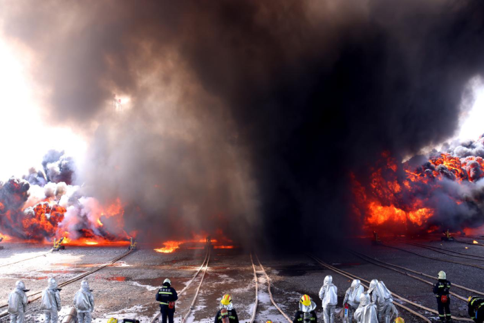 ↑應(yīng)急救援力量撲滅因輸油管道泄漏引發(fā)的大火。王連彬 攝