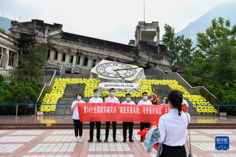 5月12日,市民在汶川縣映秀鎮(zhèn)四川汶川特大地震漩口中學(xué)遺址參觀。