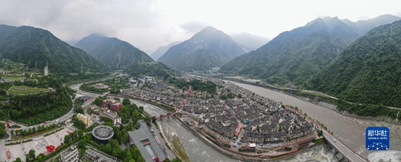 這是5月12日拍攝的汶川縣映秀鎮(zhèn)一角(無人機(jī)全景照片)。