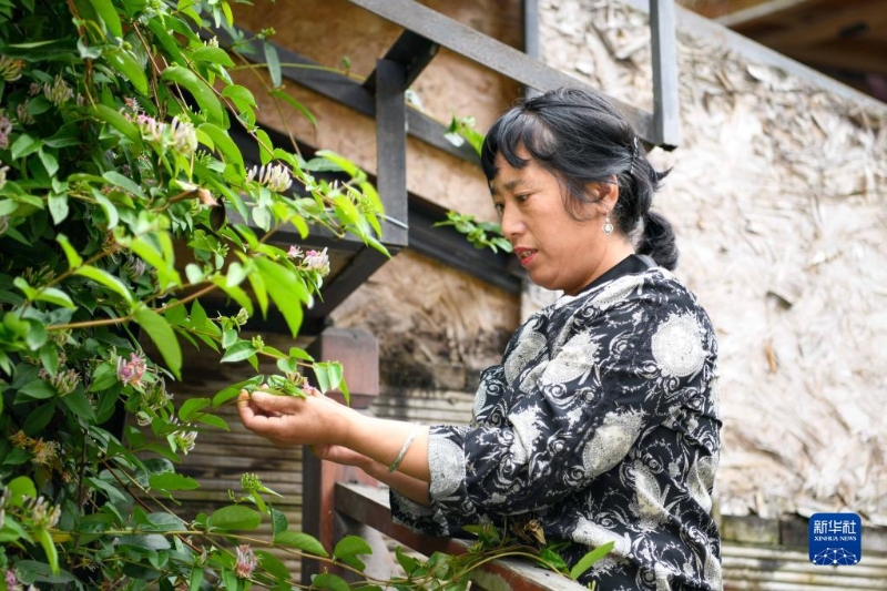 5月12日,在汶川縣映秀鎮(zhèn)場鎮(zhèn),一名當(dāng)?shù)鼐用裨诓烧疸y花。
