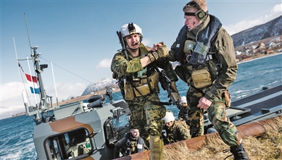 美國、法國和荷蘭軍隊士兵在挪威參加聯(lián)合軍事演習(xí)。