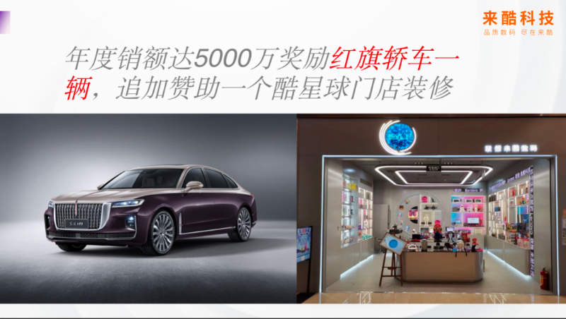 對于來酷智選產(chǎn)品及政策,產(chǎn)品營銷中心數(shù)碼產(chǎn)品總經(jīng)理侯健也做出了詳細(xì)介紹。此次,來酷給出了極為豐富的產(chǎn)品矩陣,來酷PC、一體機(jī)、DIY品類、鍵鼠類產(chǎn)品、線材類產(chǎn)品、健康類產(chǎn)品、酷玩類產(chǎn)品,還不乏一些戰(zhàn)略合作品牌,如小度、SKG、森海塞爾、羅技等,更有酷星球聯(lián)盟品牌-任天堂-索尼-微軟。侯健表示,來酷通過豐富的產(chǎn)品種類和完善的產(chǎn)品政策將與合伙人一起實(shí)現(xiàn)更多價(jià)值的可能。更讓人驚喜的是,來酷此次宣布,渠道年度銷額達(dá)5000萬獎(jiǎng)勵(lì)紅旗轎車一輛,追加贊助一個(gè)酷星球門店裝修。