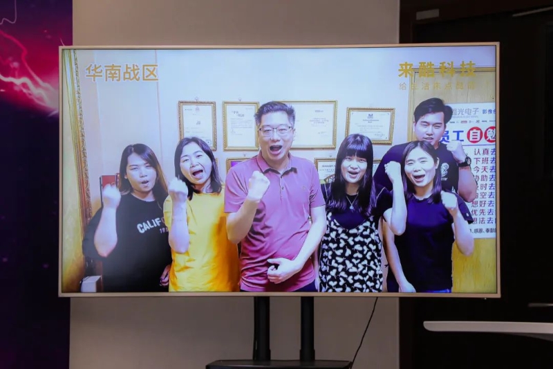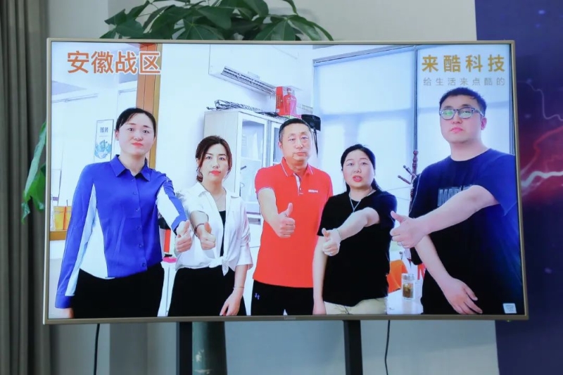 誓師環(huán)節(jié)將會議的氣氛推向了高潮,各大區(qū)的誓師視頻彰顯著每一個(gè)來酷人昂揚(yáng)的斗志和突破的決心??偛康氖膸熁顒右苍诟鞔髤^(qū)誓師后開始,來酷伙伴個(gè)個(gè)激情滿滿、熱血沸騰,愿不斷奮進(jìn),不斷進(jìn)取,在智慧零售的賽道上繼續(xù)加碼,向陽奔跑。