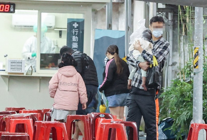 兒童重癥問(wèn)題引發(fā)急診量能不足擔(dān)憂(yōu),圖為等待PCR的家長(zhǎng)與孩童。記者曾原信/攝影