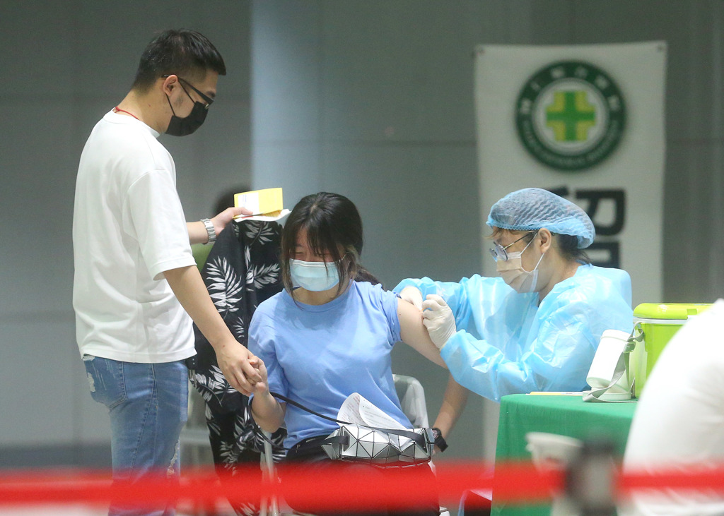 7天近50萬人染疫,不少民眾去打疫苗。(粘耿豪攝)
