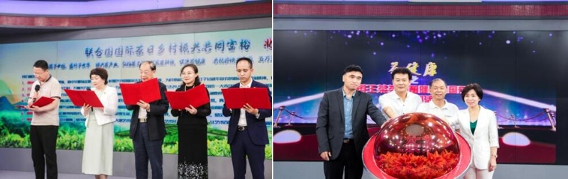 活動發(fā)布茶?!霸坡糜巍?“茶基地”地址,舉辦茶健康之國王茶茶仙釀健康中國行大型系列活動啟動儀式、“美美與共”云茶會、聯(lián)合國國際茶日超級會客廳,四川雅安葉山村“世界新大地藝術(shù)第五代建筑茶基地”,四川彭州明臺村“世界新大地藝術(shù)第五代建筑茶仙釀基地”,四川雅安葉山村“茶源文化山水文博康養(yǎng)生態(tài)旅居目的地”,四川彭州明臺村“春秋十二泉原文化文博康養(yǎng)生態(tài)旅居目的地”,四川雅安葉山村“五萬五興鄉(xiāng)村振興雷鋒精神共同富裕踐行基地”,四川彭州明臺村“五萬五興鄉(xiāng)村振興雷鋒精神共同富裕踐行基地”進行揭牌。