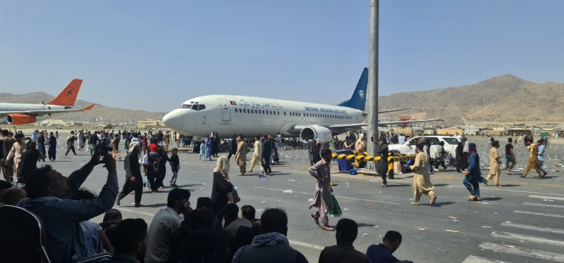 這是2021年8月16日,大量民眾聚集在阿富汗喀布爾機(jī)場(chǎng)試圖離開阿富汗。新華社發(fā)