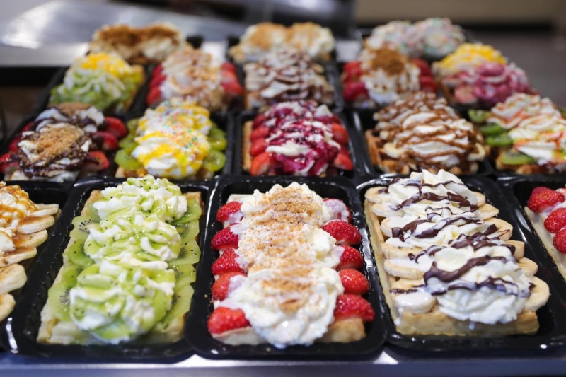 2021年9月10日在比利時布魯塞爾拍攝的各色華夫餅。新華社記者鄭煥松攝