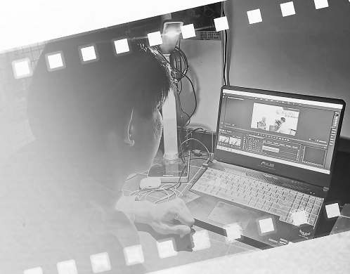 志愿者王奕森利用課余時(shí)間剪輯老兵口述歷史視頻。