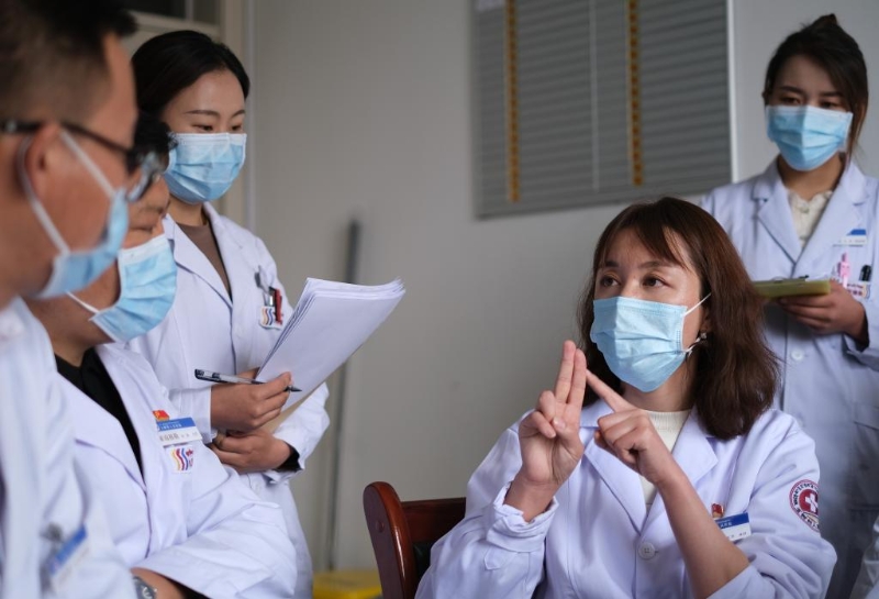 4月25日,青海省人民醫(yī)院醫(yī)生、青南支醫(yī)隊(duì)員謝延玲(右二)和青海省玉樹(shù)藏族自治州人民醫(yī)院醫(yī)生探討患者病情。新華社記者央秀達(dá)珍 攝