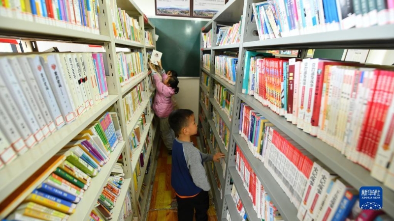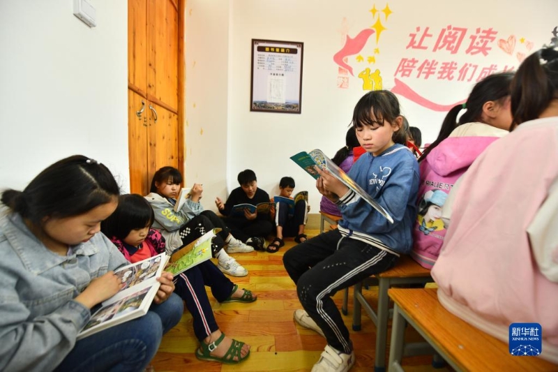 骨龍村小學(xué)學(xué)生在圖書(shū)室閱讀(5月25日攝)。