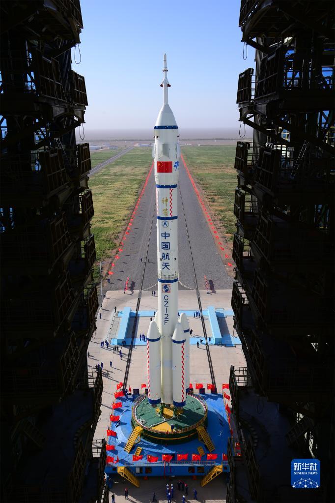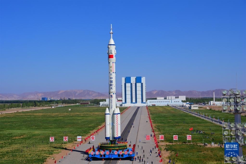 5月29日,神舟十四號載人飛船與長征二號F遙十四運(yùn)載火箭組合體轉(zhuǎn)至發(fā)射區(qū)。新華社發(fā)(汪江波 攝)