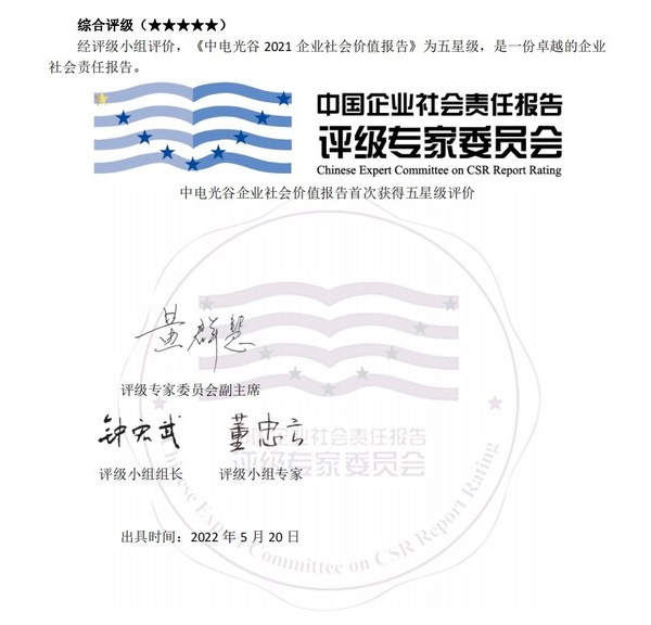 中電光谷《2021企業(yè)社會(huì)價(jià)值報(bào)告》獲五星評(píng)級(jí)