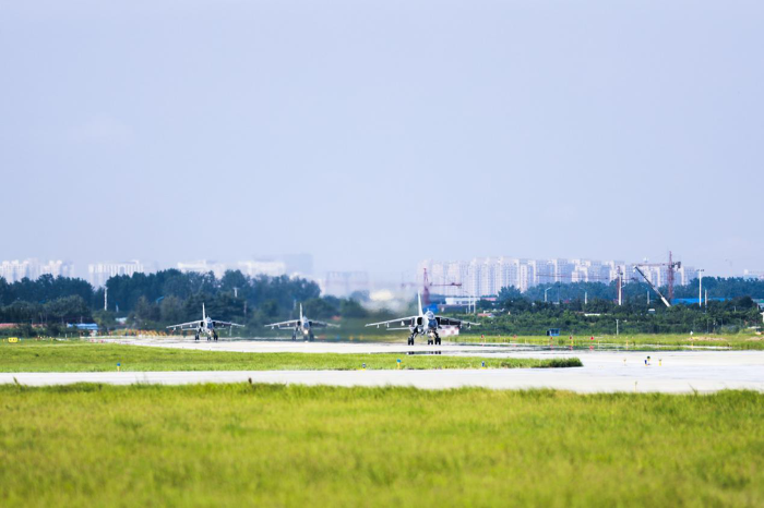 ↑戰(zhàn)機(jī)滑行,準(zhǔn)備升空。蘭則劍 攝